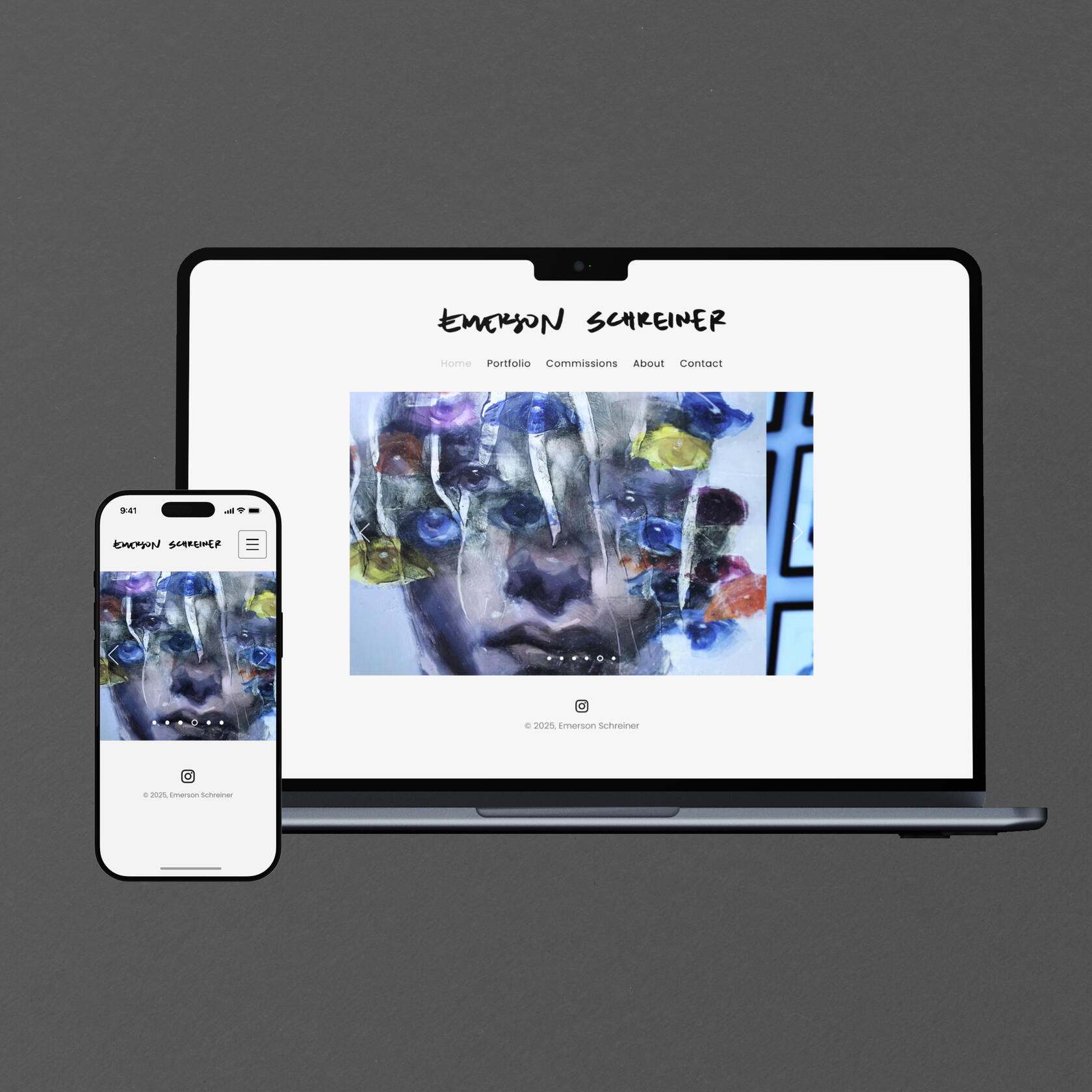 Emerson Schreiner sought a custom Wix website to better present their work through a refined, intuitive experience. The challenge was to showcase the artwork with strong visual impact while ensuring clear navigation and an engaging user journey.